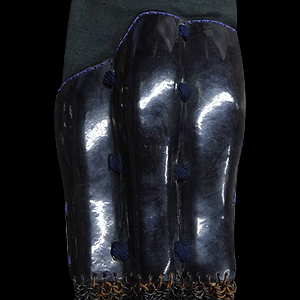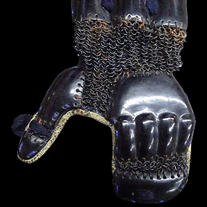 El ninja por practicidad a veces usaba armaduras más simples o solamente las piezas imprescindibles, en este caso podemos ver unos guanteletes samurai como los que podía usar el ninja prescindiendo de la parte superior o en caso de usar por ejemplo una manta kusari para el cuerpo poder proteger también sus manos.