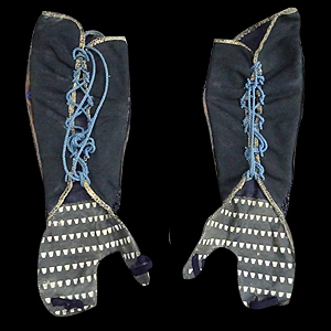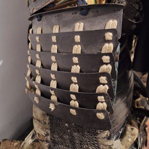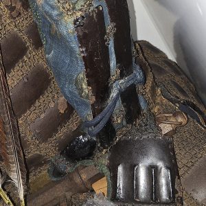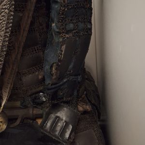 En los guanteles de la foto ( en muy buen estado) podemos apreciar además del intrincado sistema de nudos y sujeción de la manga que ofrece una gran protección en la zona del antebrazo además de la mano pero permite tener una gran movilidad en las articulaciones.
